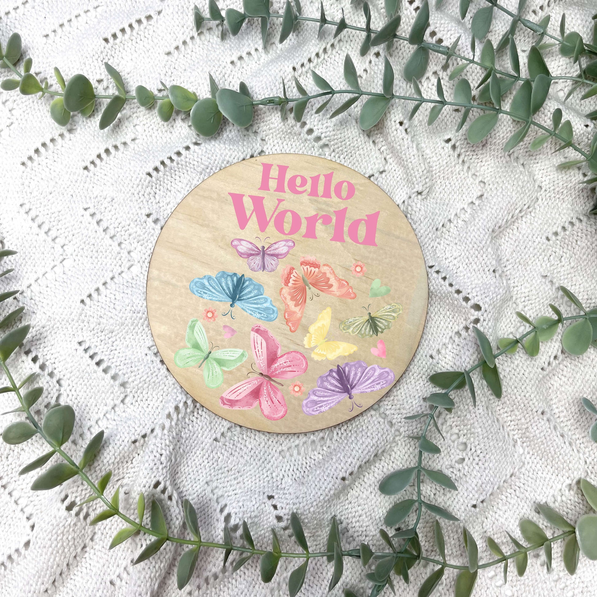 You can enhance the experience with our perfectly matching designs, you can pair the milestone cards with our separate Hello World, I'm here, name discs, or pregnancy announcement discs, which are 15cm in size. These are sold SEPARATELY within the listing.