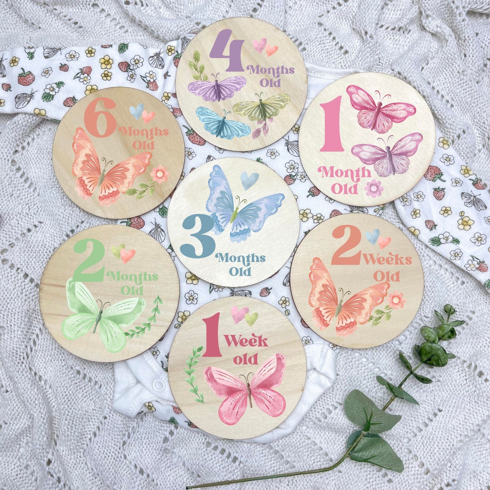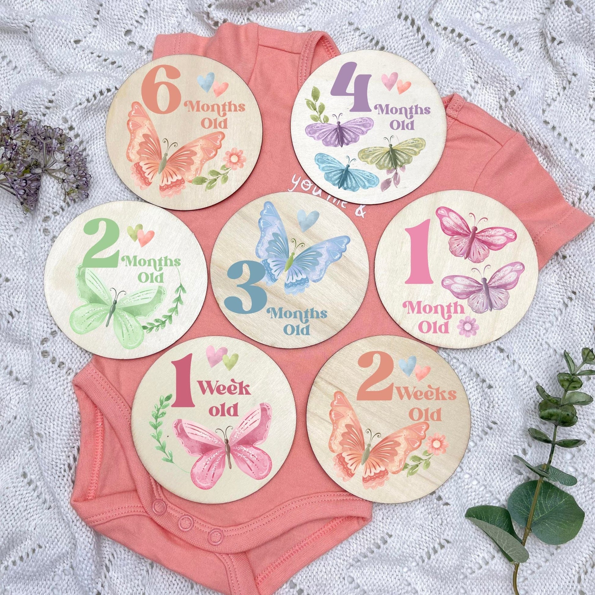 Butterflies newborn milestone discs, baby milestones, Butterflies, girl nursery, butterfly theme