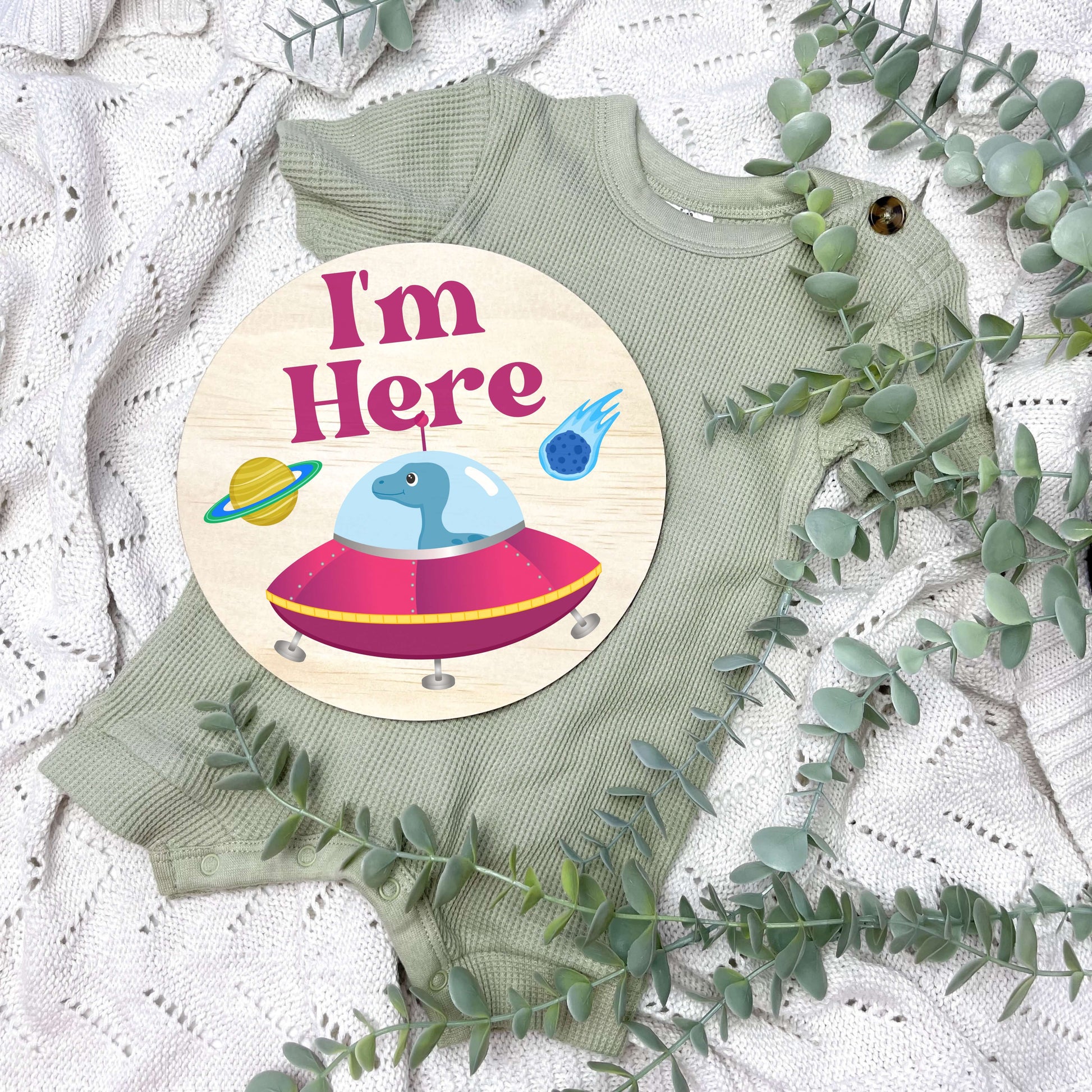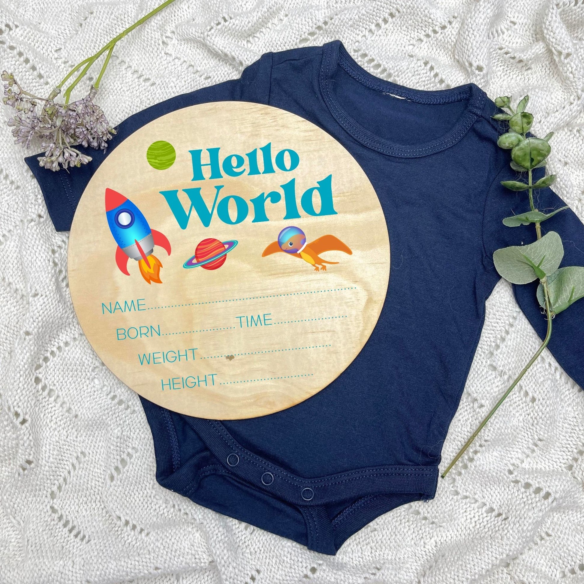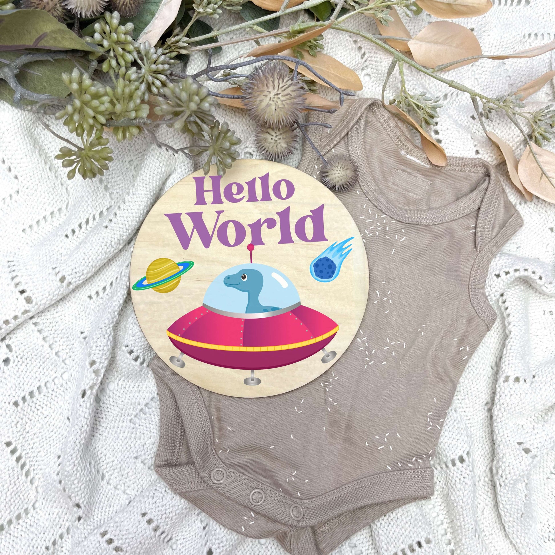 You can enhance the experience with our perfectly matching designs, you can pair the milestone cards with our separate Hello World, I'm here, name discs, or pregnancy announcement discs, which are 15cm in size. These are sold SEPARATELY within the listing.