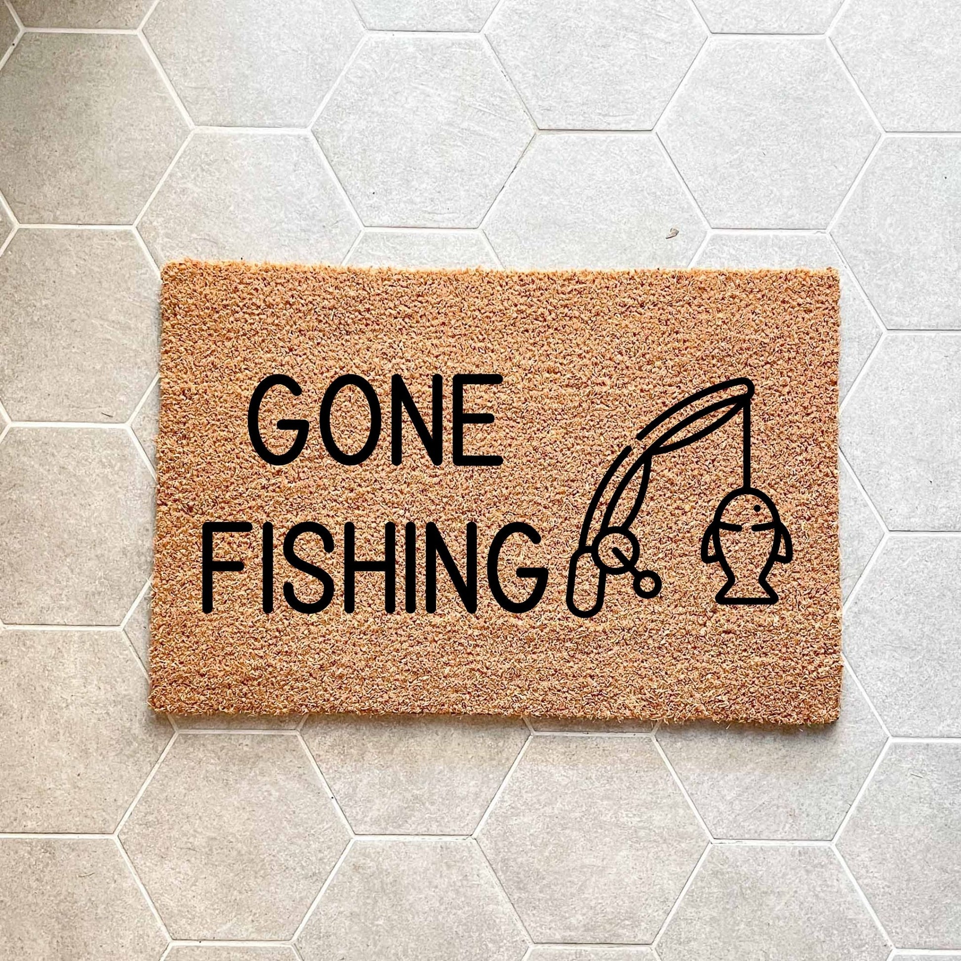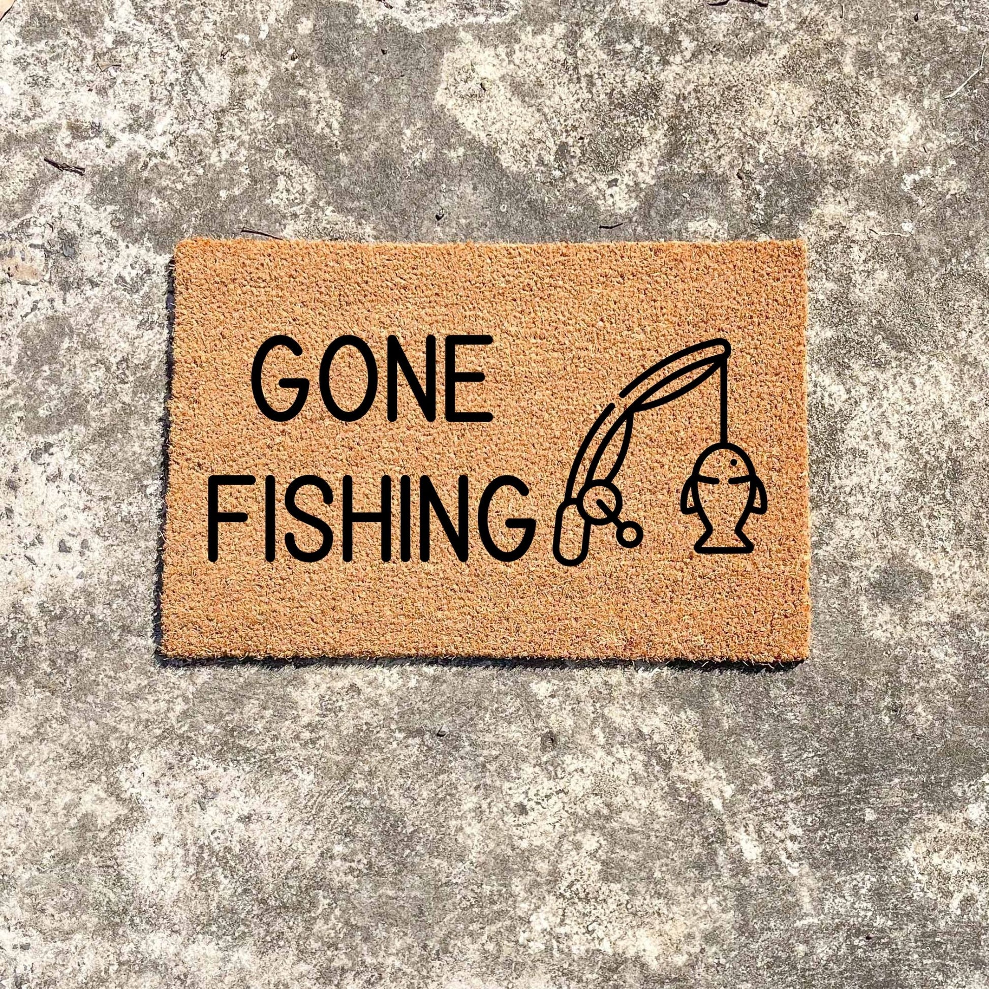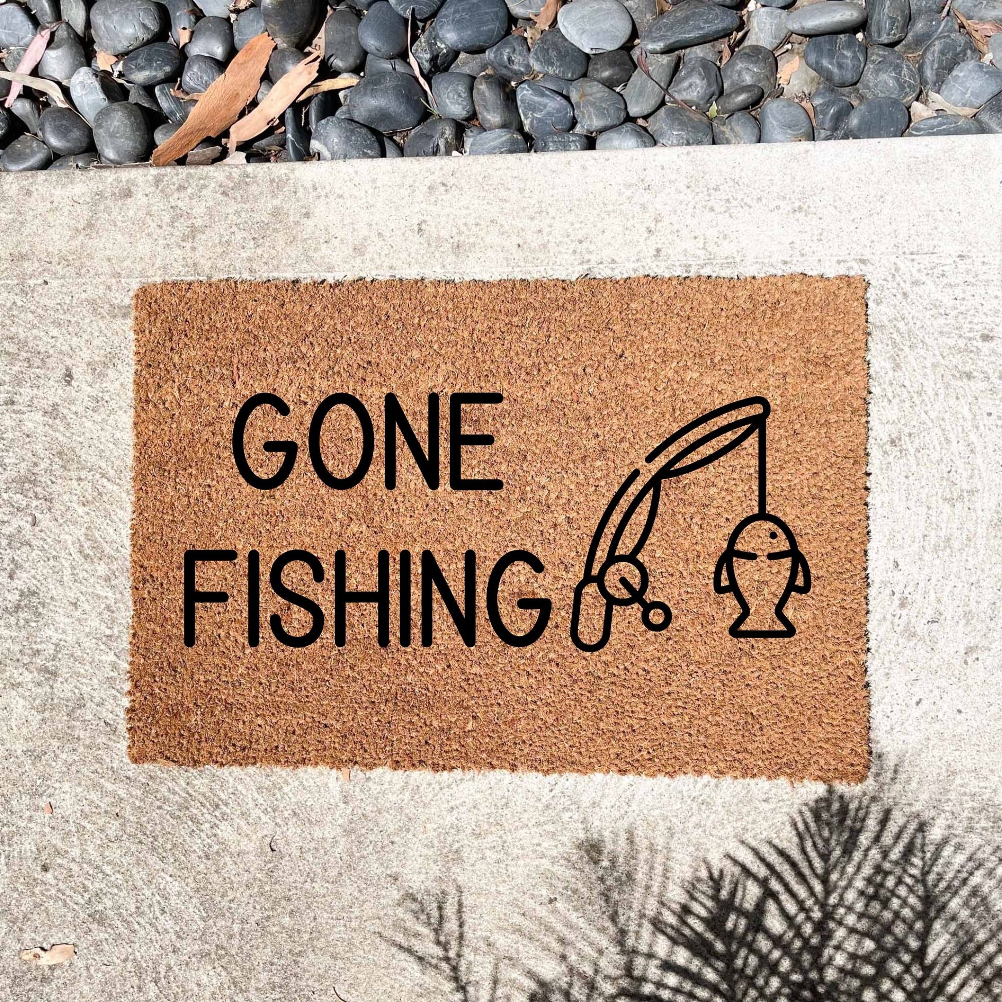 Gone fishing doormat, fathers day gift, gifts for him, birthday gift, dad doormat, grandpa doormat