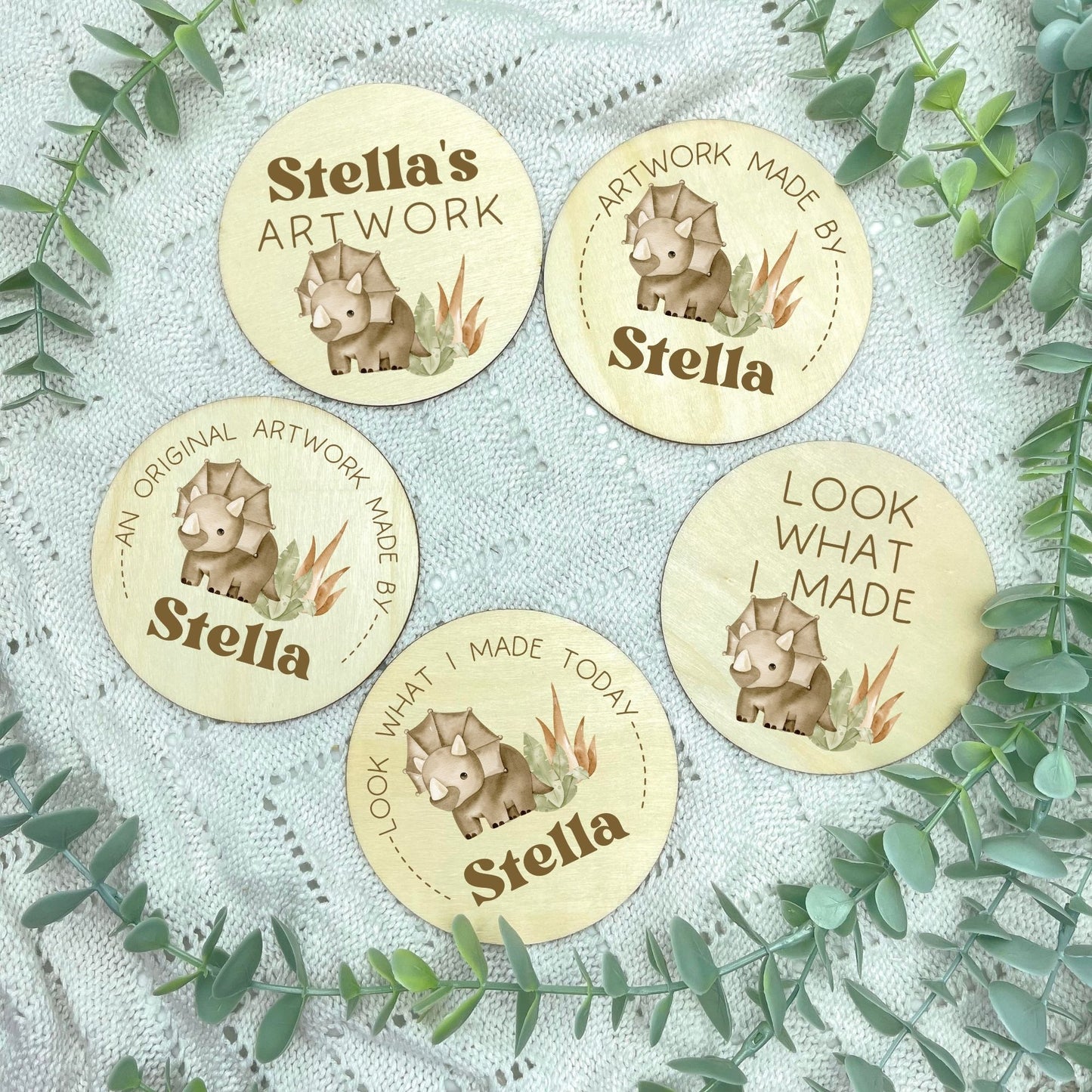 Measuring at 10cm in diameter, these magnet holders are the perfect size to accommodate various sizes of artwork, from small drawings to larger paintings. The lightweight and durable plywood construction ensures longevity, making it a cherished keepsake that can be enjoyed for years to come.