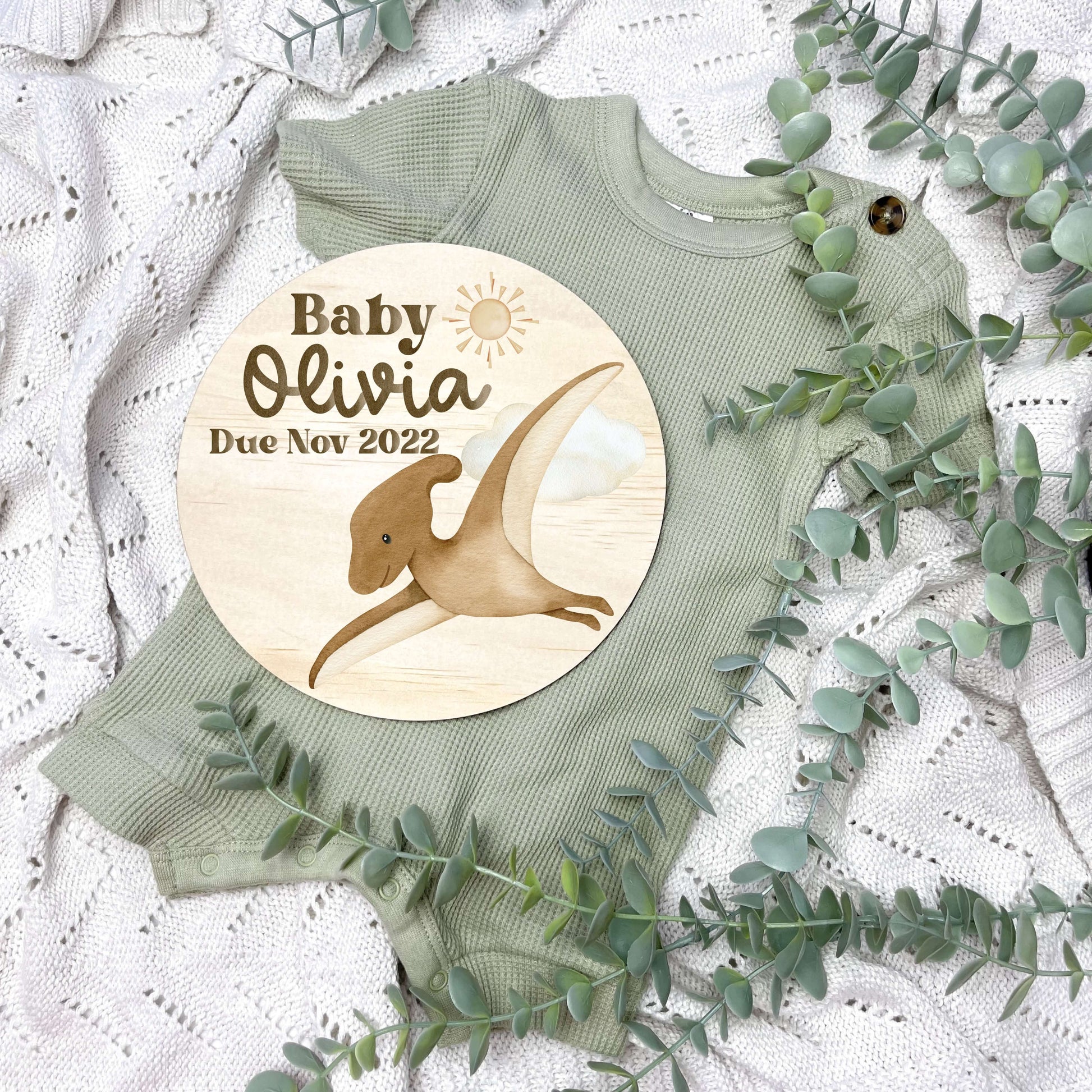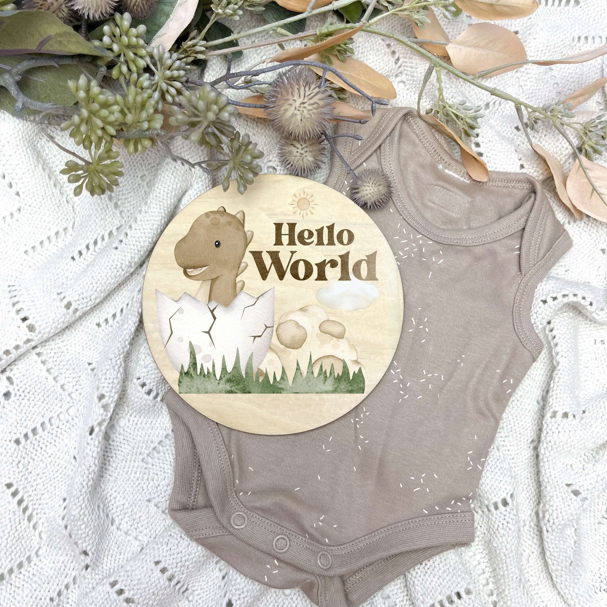 You can enhance the experience with our perfectly matching designs, you can pair the milestone cards with our separate Hello World, I'm here, name discs, or pregnancy announcement discs, which are 15cm in size. These are sold SEPARATELY within the listing.