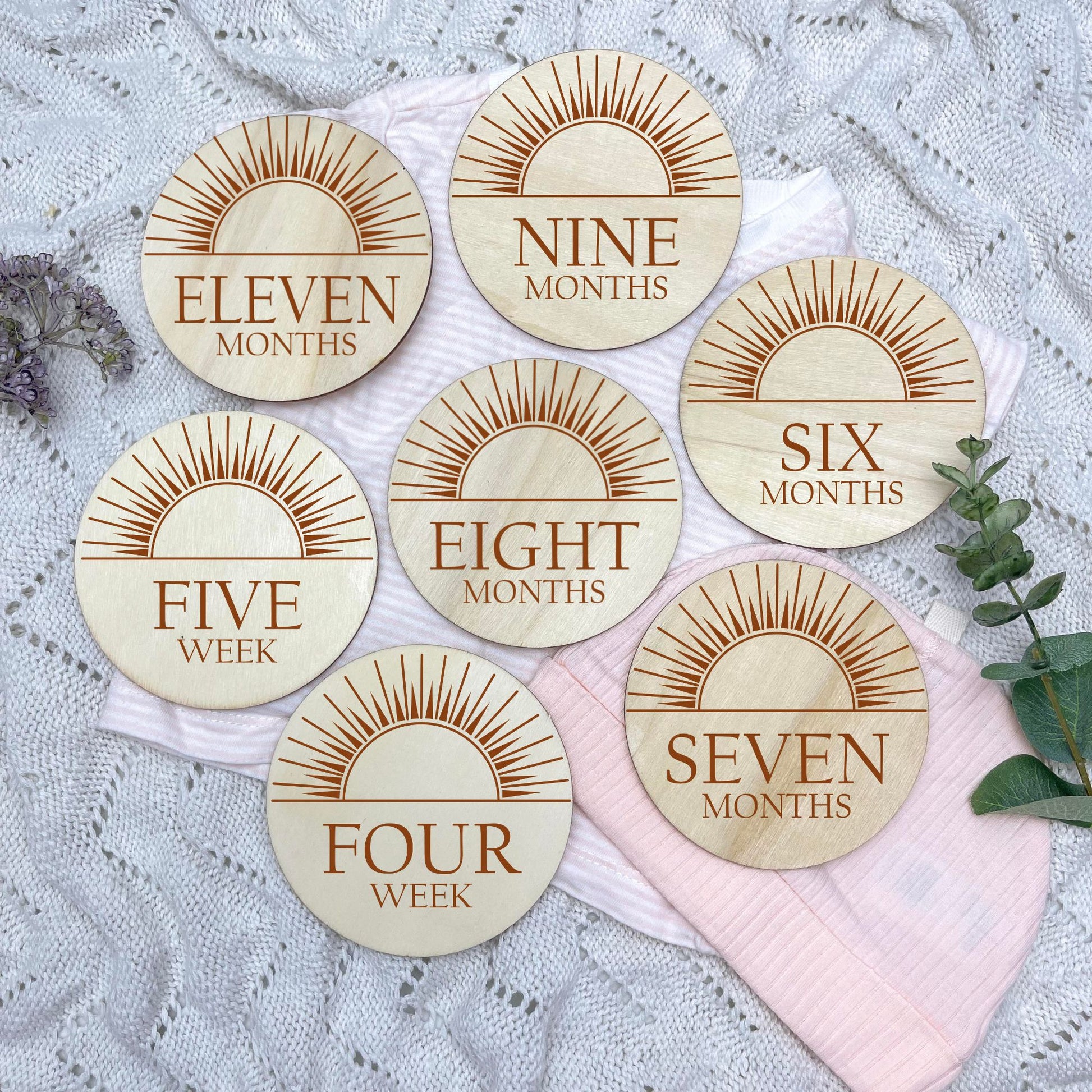 The sun milestone cards, baby milestone discs, boho nursery, aesthetic nursery, beige nursery