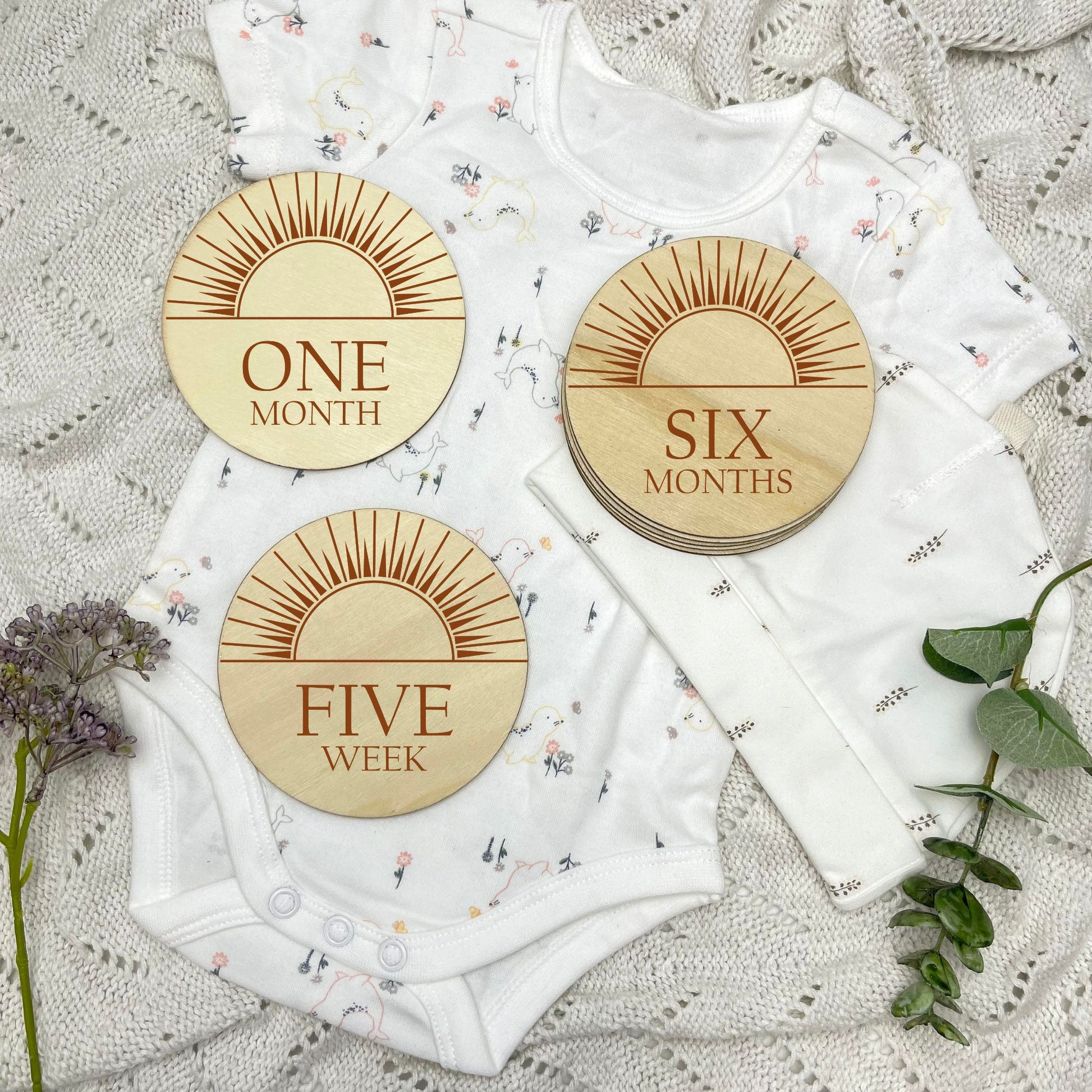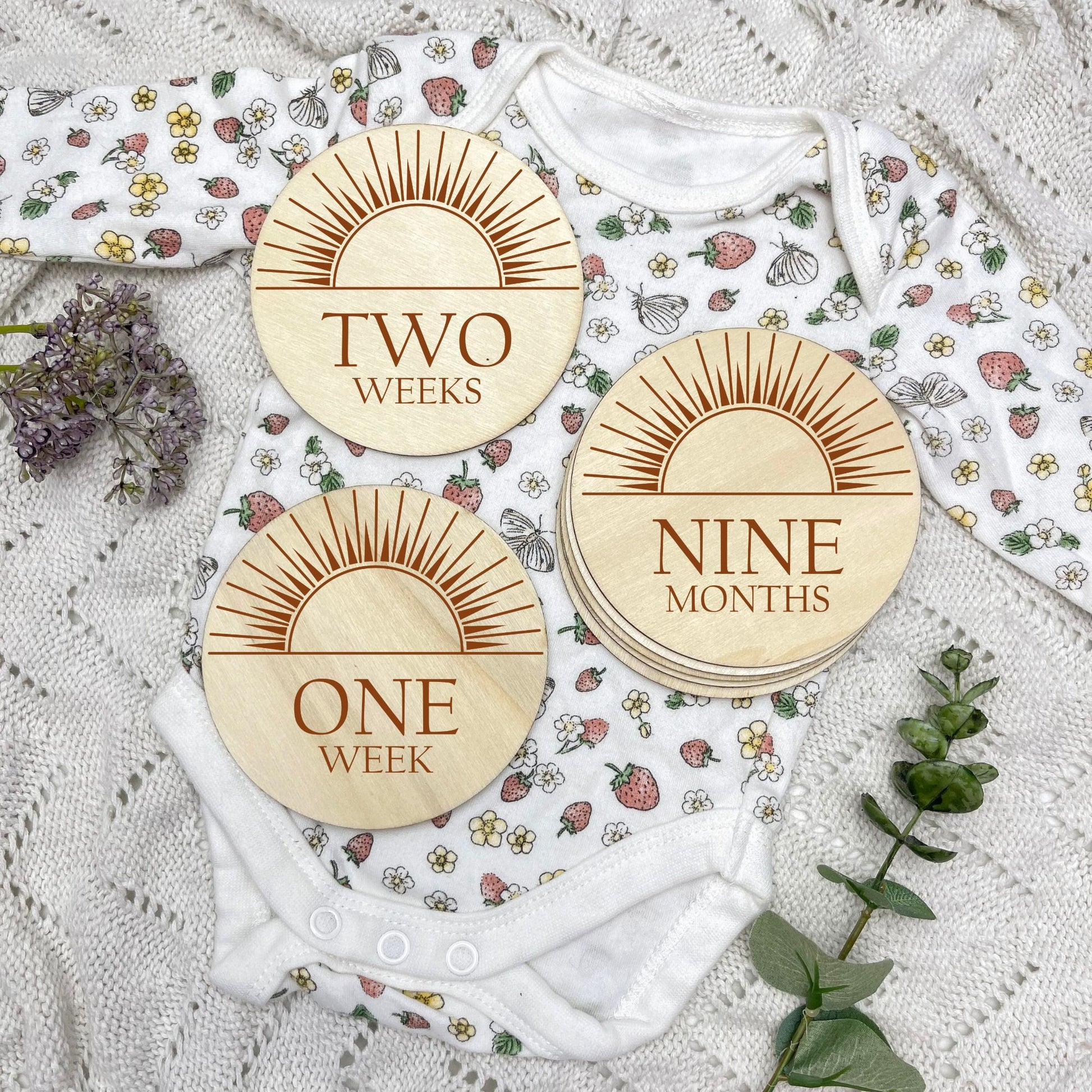 Our milestone cards and announcement discs are designed to help you capture and cherish the most precious and memorable moments. You can use these milestone cards to reflect back over the first year of your baby's life in photo form.
